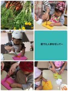 人参を抜く、洗う、切る、身近な人や友だちと食べるということは、大いに食育につながったと思います。