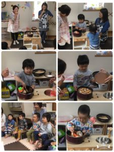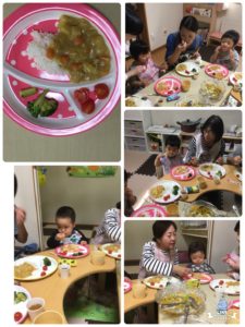 ぐるぐるカレーという、絵本をもとに手遊びや出し物を見てから