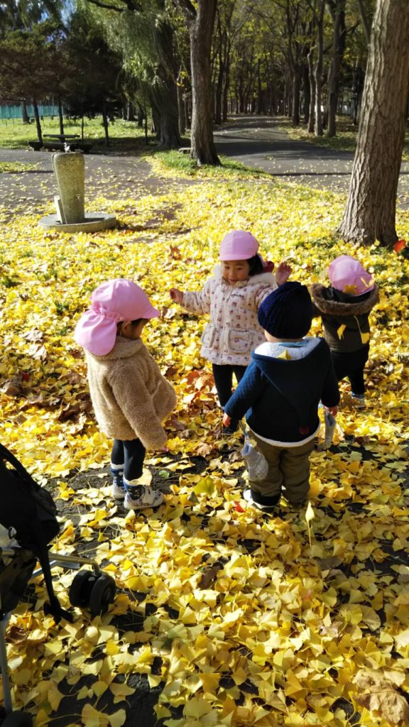 紅葉狩りとハロウィン 2019年11月20日 berry berry 未分類 コメントを残す こんにちは。保育室ベリーベリー施設長 工藤です。 今年は、秋が長く沢山の紅葉に触れる事が出来ました。 色とりどりの紅葉 と子ども達の活動がマッチして、楽しく過ごせました。 10月は、ハロウィンの行事もあり、可愛い衣装で、ご近所訪問も(^^)/ いつも地域の方々に見守って頂き、大変お世話になっています。 ありがとうございます ! 札幌は、先週の雪で気温も下がり寒くなっています。これから本格的な冬になり雪も多くなりますね!子ども達と、沢山雪遊びを楽しみたいと思っています !