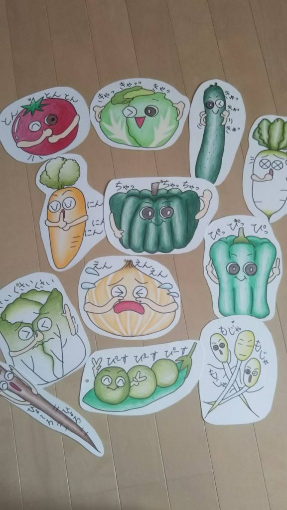 ☆手作りおもちゃ☆ 2020年7月10日 berry berry 未分類 コメントを残す こんにちは。保育室ベリーベリーの鈴木です。 保育室ベリーベリーでは、日々の保育の中で手作りおもちゃを取り入れています♫ 今回はペープサートで『野菜の歌』『しっぽぽぽ』を作りました。 子ども達と一緒に手遊びをしながら楽しくお野菜の名前を覚えています♫ 『しっぽぽぽ』のペープサートでもお友達同士で『だれのしっぽ?』と問題を出しあっている姿がとても可愛いです♥ 動物のしっぽがみんな違う色、形をしていてこれはだれのしっぽかなぁ?とお友達と一緒に考えて答えてくれます♫