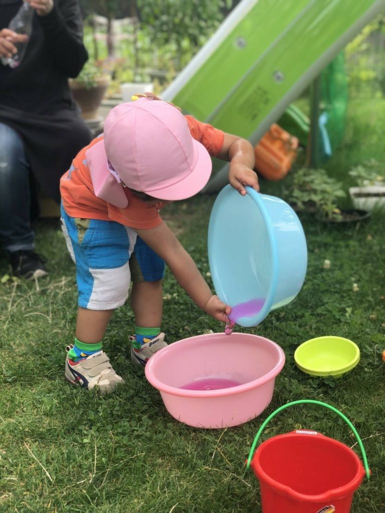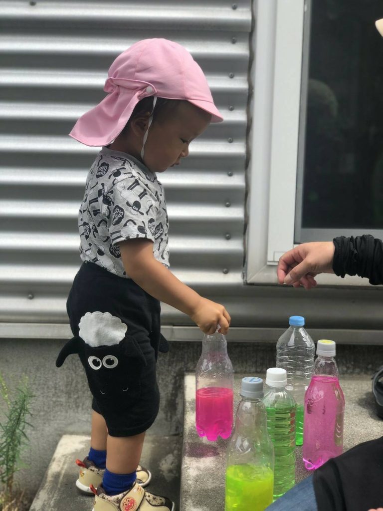 『夏の遊びと製作』 2020年8月3日 berry berry 未分類 コメントを残す こんにちは!!保育室ベリーベリーの鈴木です。 色水を作って遊びました。何種類もの色を作り赤と青を混ぜると『紫色!!』など色を混ぜると違う色ができる発見!綺麗な色と新たな発見でワクワクできる遊びです✨ 暑い夏は水遊び!短い夏を思う存分楽しみたいと思います! 七夕製作☆指にのりを付け上手に折り紙をペタペタ♪のりのペタペタする感触も子どもにとってはいい刺激と経験になります❗️一人ひとり素敵な作品が出来上がりました ✨