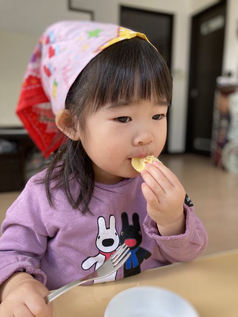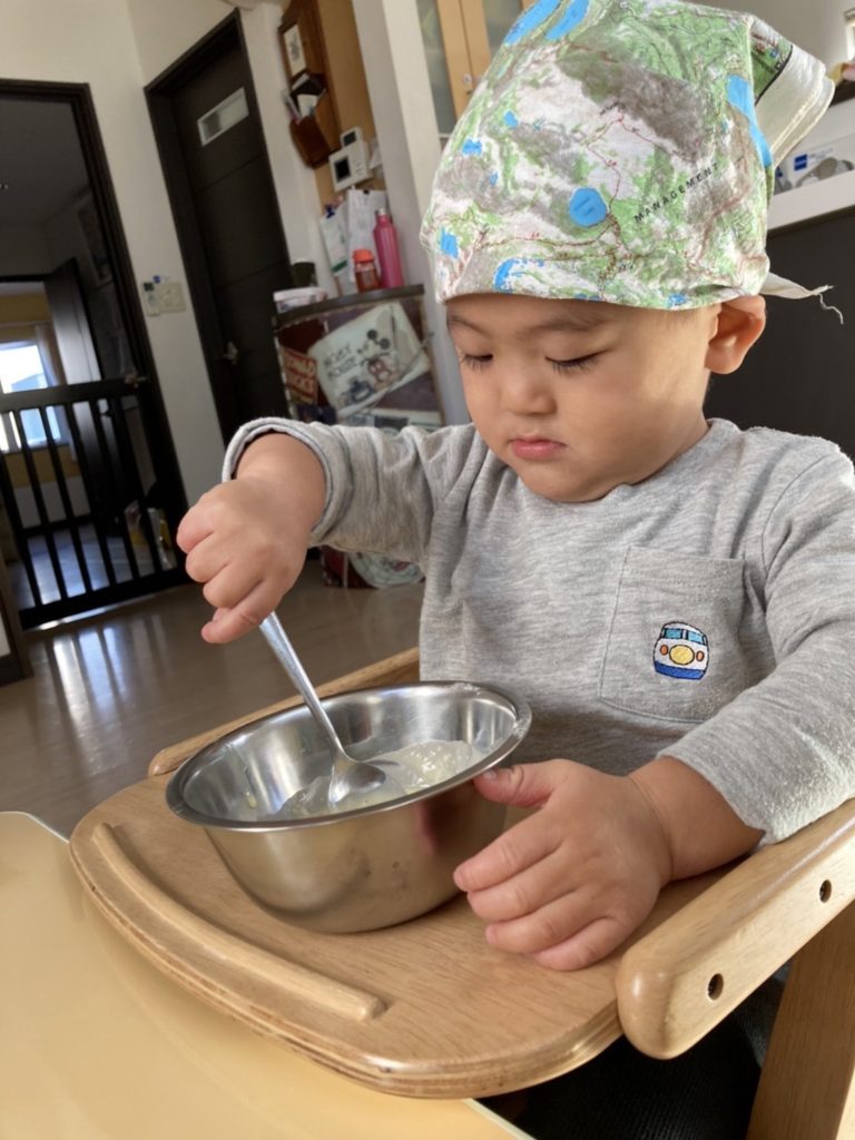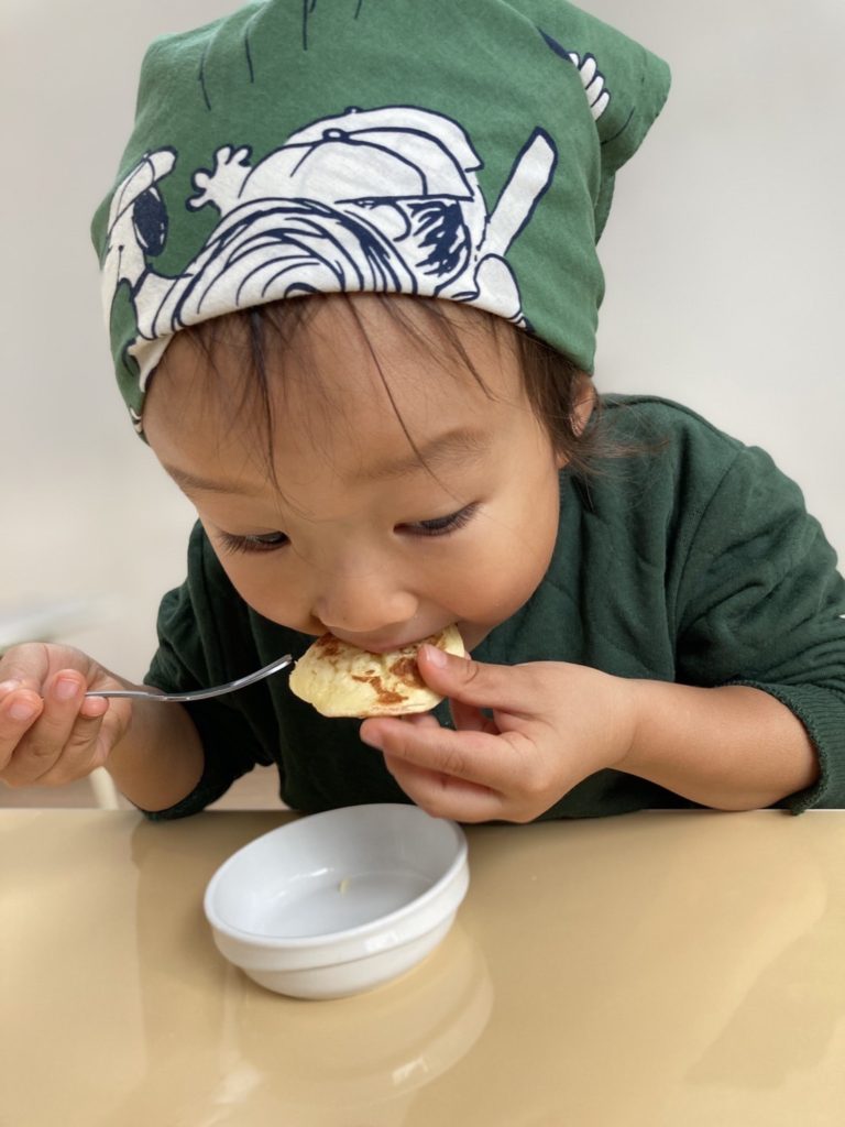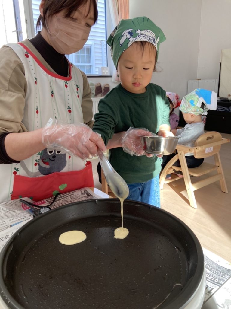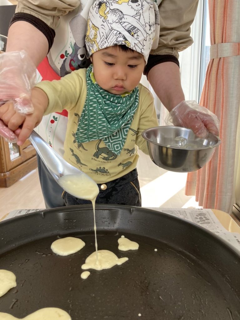 絵本『しろくまちゃんのホットケーキ』の真似をしてホットケーキ作り 🎂