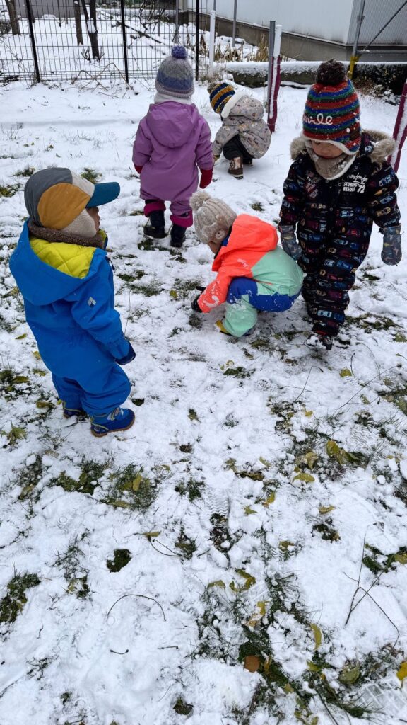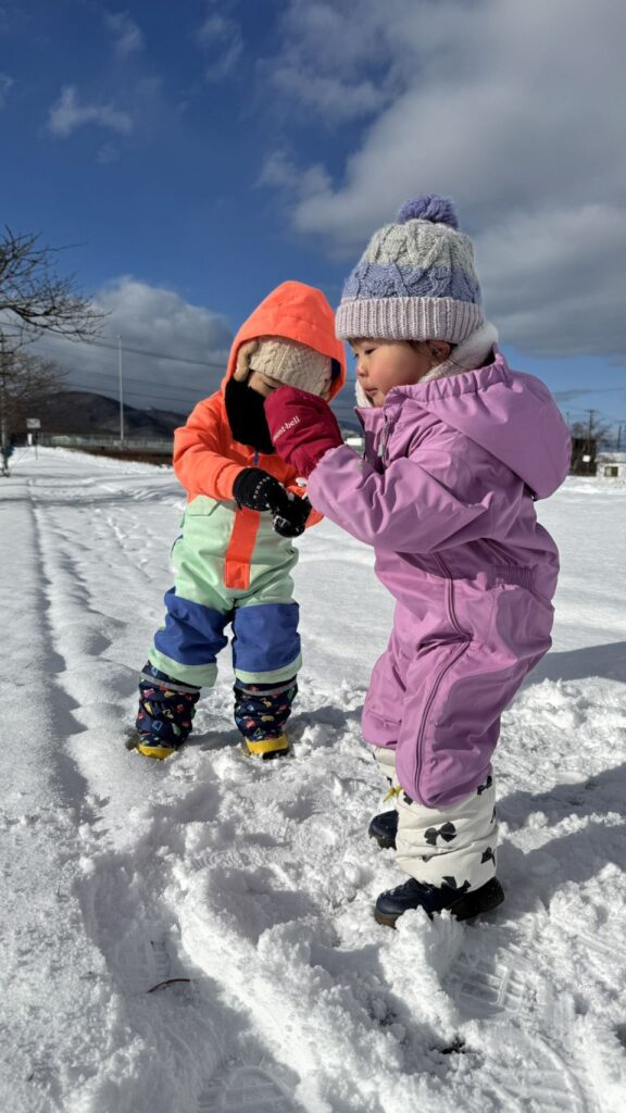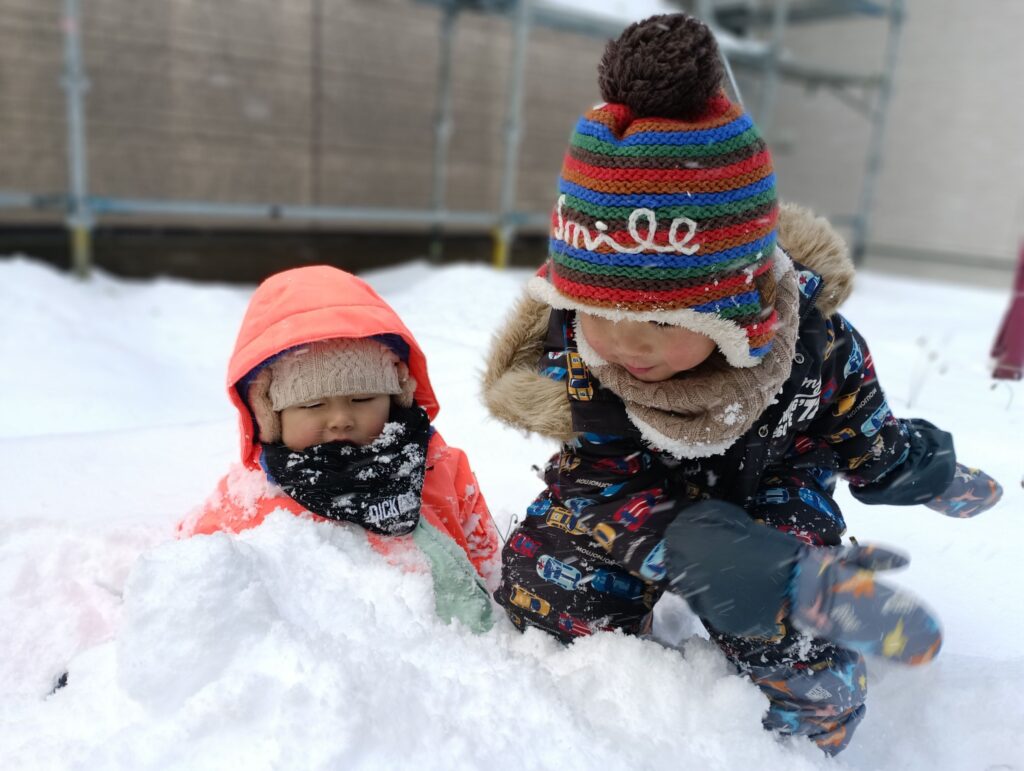 子どもたちは雪遊びの準備もできていて、外へ出ると嬉しそうに雪に触れたり、